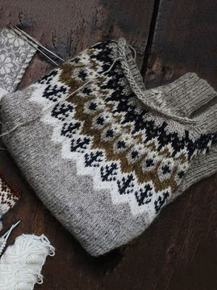 Vintage Icelandic Pattern Round Neck Comfy Sweater