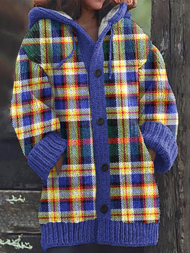 Vintage Icelandic Plaid Knitted Warm Women's Cardigan Sweater