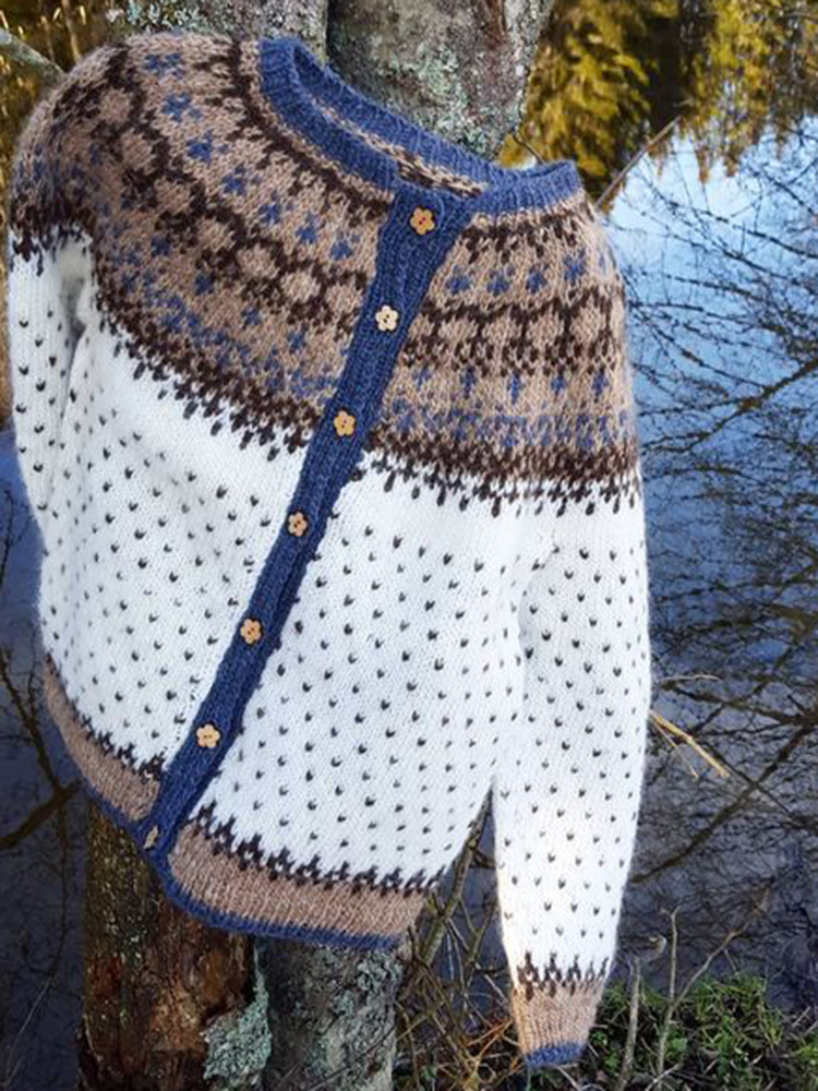Vintage Icelandic Tribal Button Color Block Cozy Sweater Cardigan
