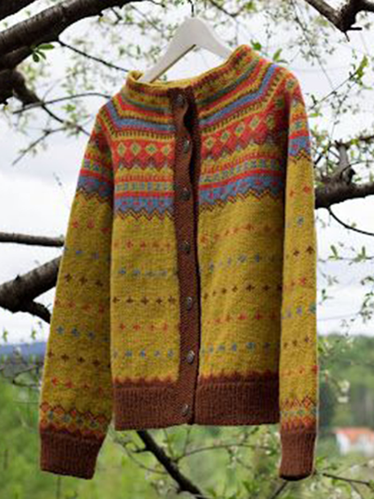 Vintage Icelandic Wiola Knit Jacquard Warmth Cardigan Unisex
