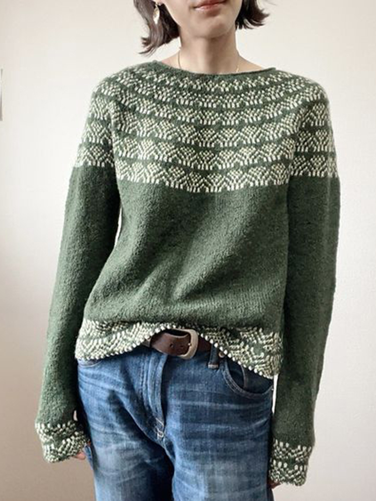 Vintage Jacquard Long-Sleeved Crew Neck Sweater