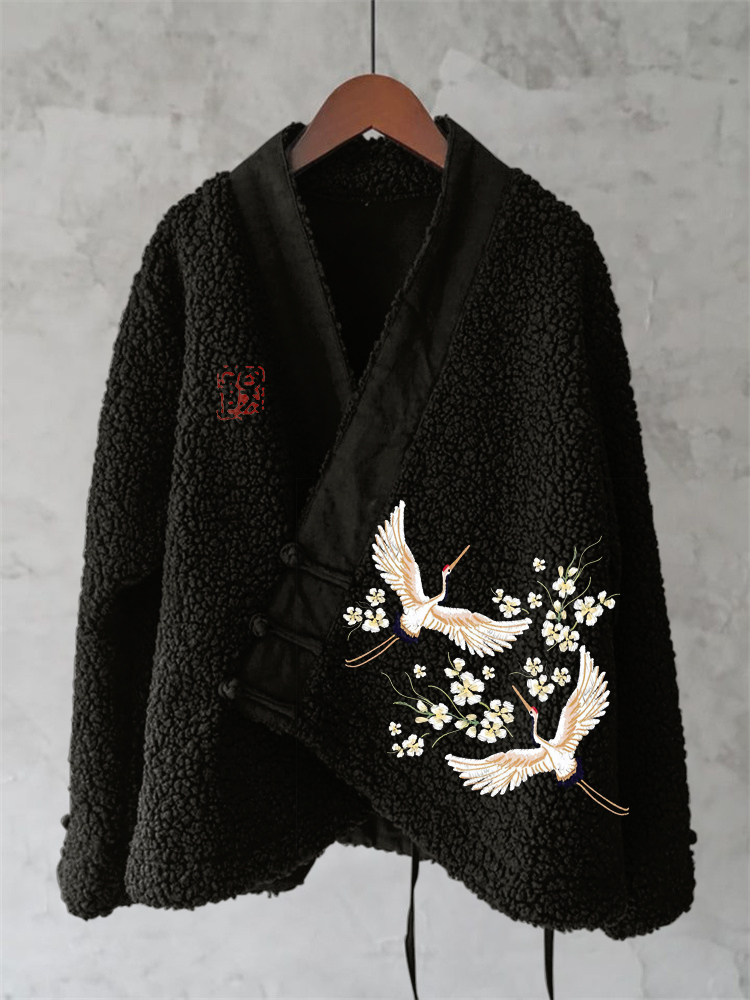 Vintage Japanese Crane Plum Blossom Art Casual Design Kimono