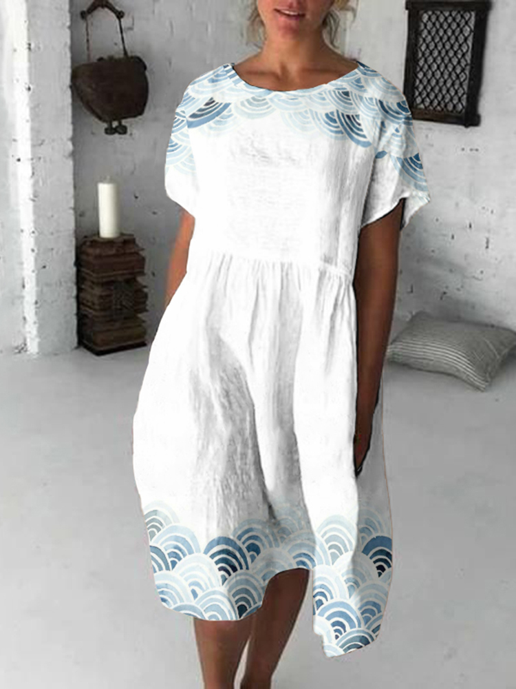 Vintage Japanese Totem Art Flowy Midi Dress