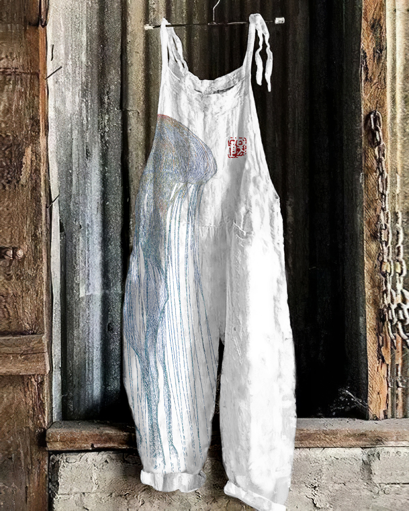 Vintage Jellyfish Japanese Art Loose Casual Jumpsuit
