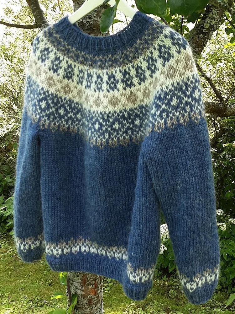 Vintage Knitted Jacquard Blue Iceland Crew Neck Sweater