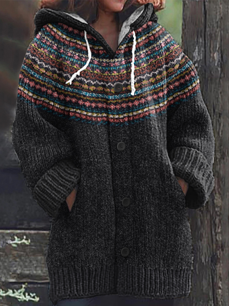Vintage Knitted Jacquard Pattern Cozy Cardigan Sweater