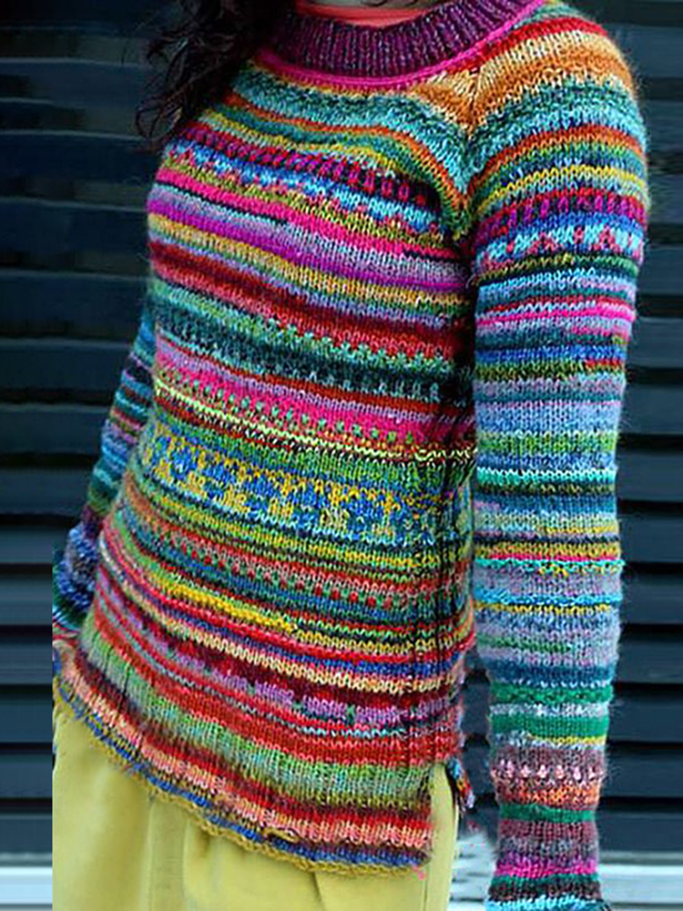 Vintage Rainbow Contrast Long Sleeve Cozy Warm Sweater