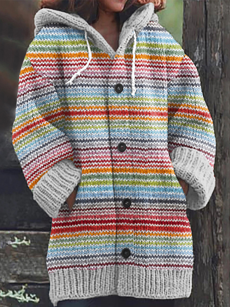 Vintage Rainbow Stripe Knit Jacquard Warmth Print Women's Sweater