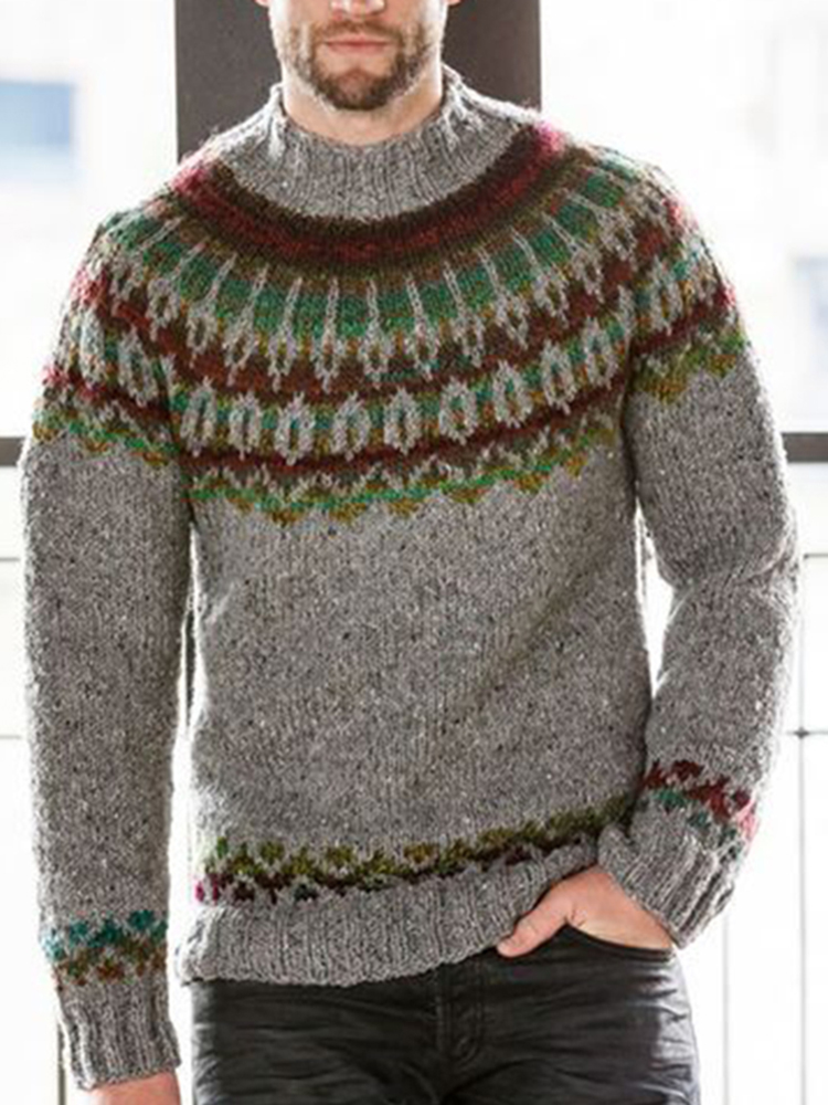 Vintage Royal Knit Jacquard Icelandic Crew Neck Sweater(Unisex)