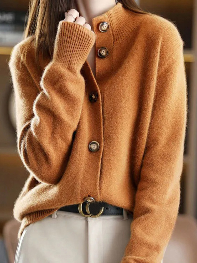 Vintage Solid Color Buttoned Turtleneck Cardigan