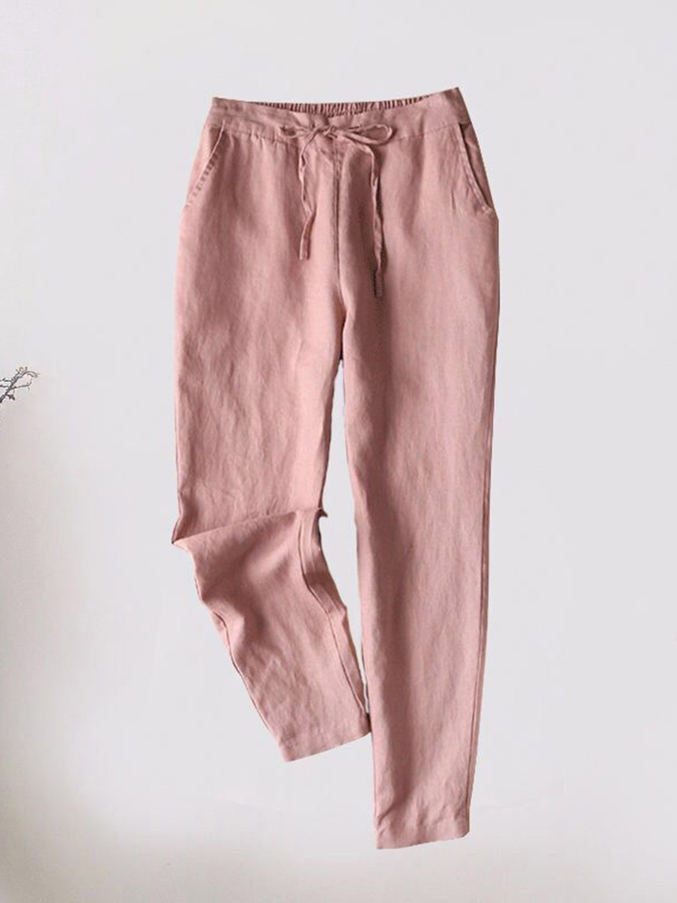 Vintage Solid Cotton Linen Pocket Casual Pants