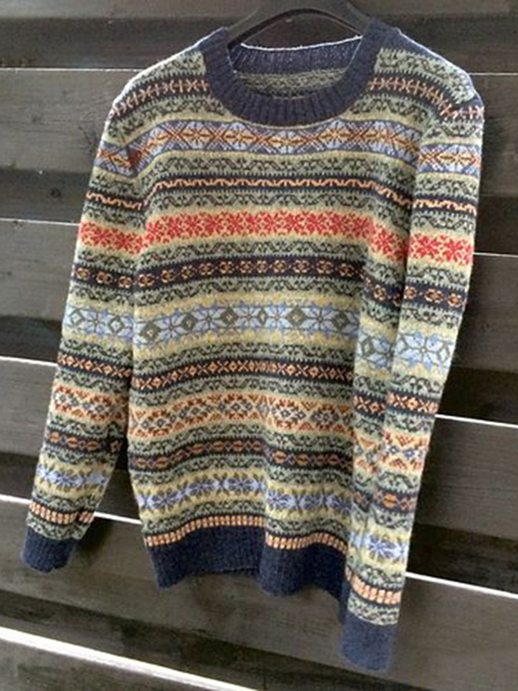 Vintage Striped Jacquard Knit Sweater
