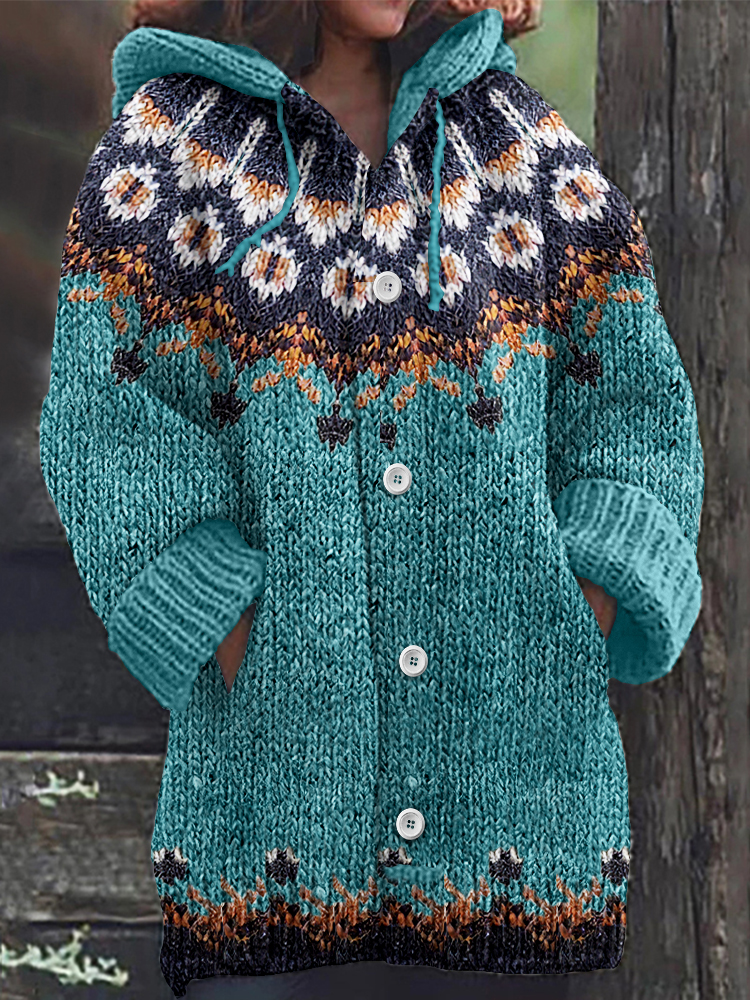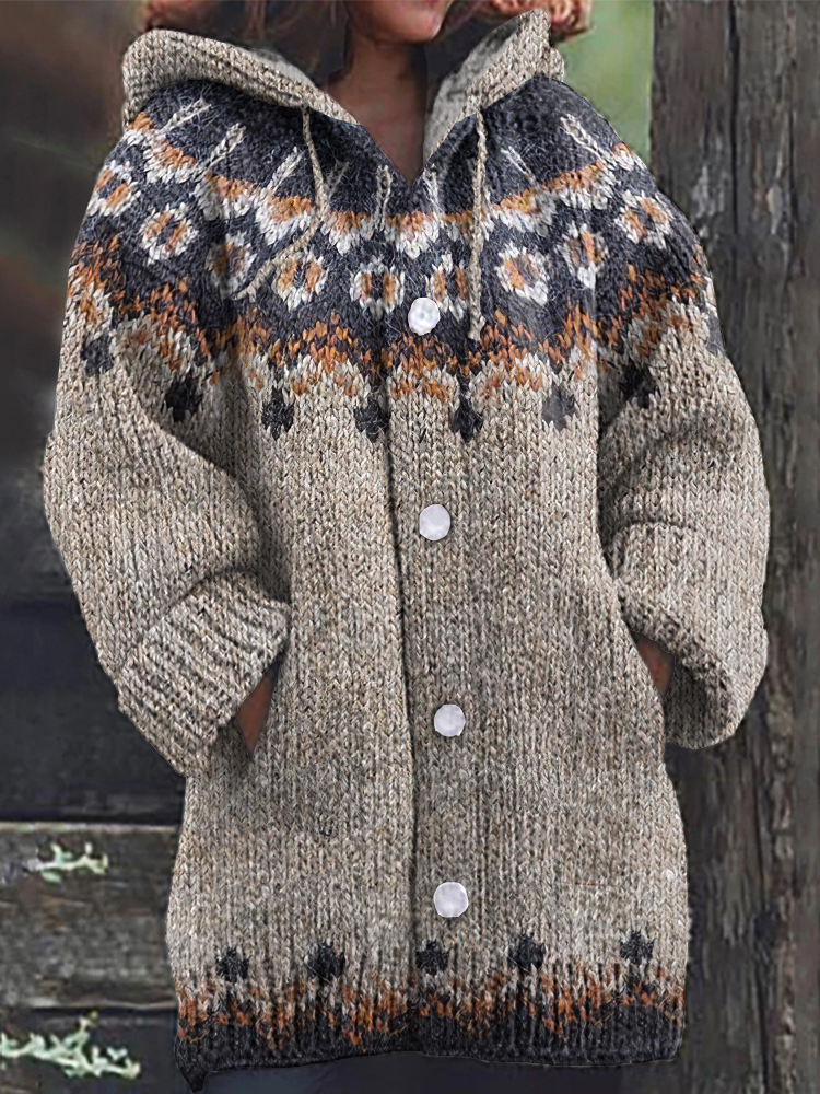 Vintage Tribal Icelandic Pattern Cozy Cardigan Sweater