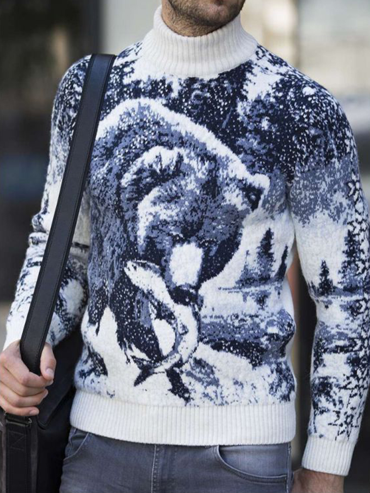 Vintage Warm Knitted Animal Jacquard Turtleneck Sweater