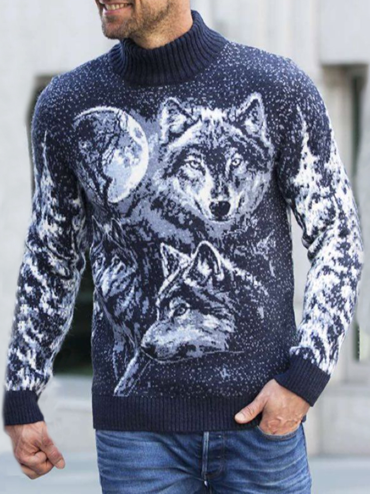Vintage Warm Knitted Animal Jacquard Turtleneck Sweater