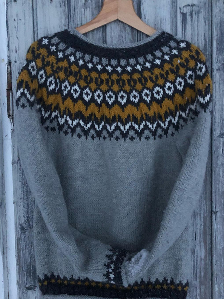 Vintage Warmth Villapaidan Knit Jacquard Icelandic Crew Neck Sweater(Unisex )