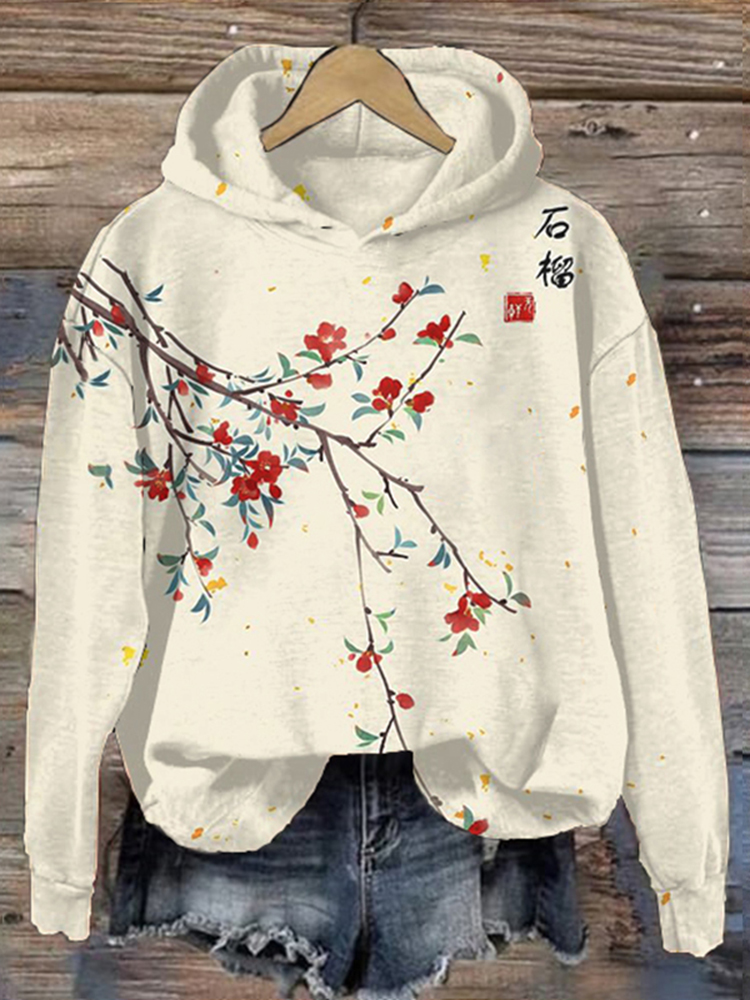 Women Japanese Art Pomegranate Printed Hoodie