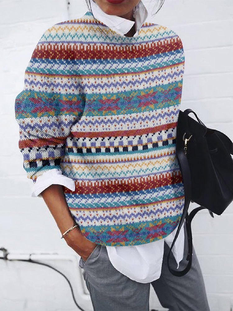 Women's Retro Color Block Striped Pattern Sweater