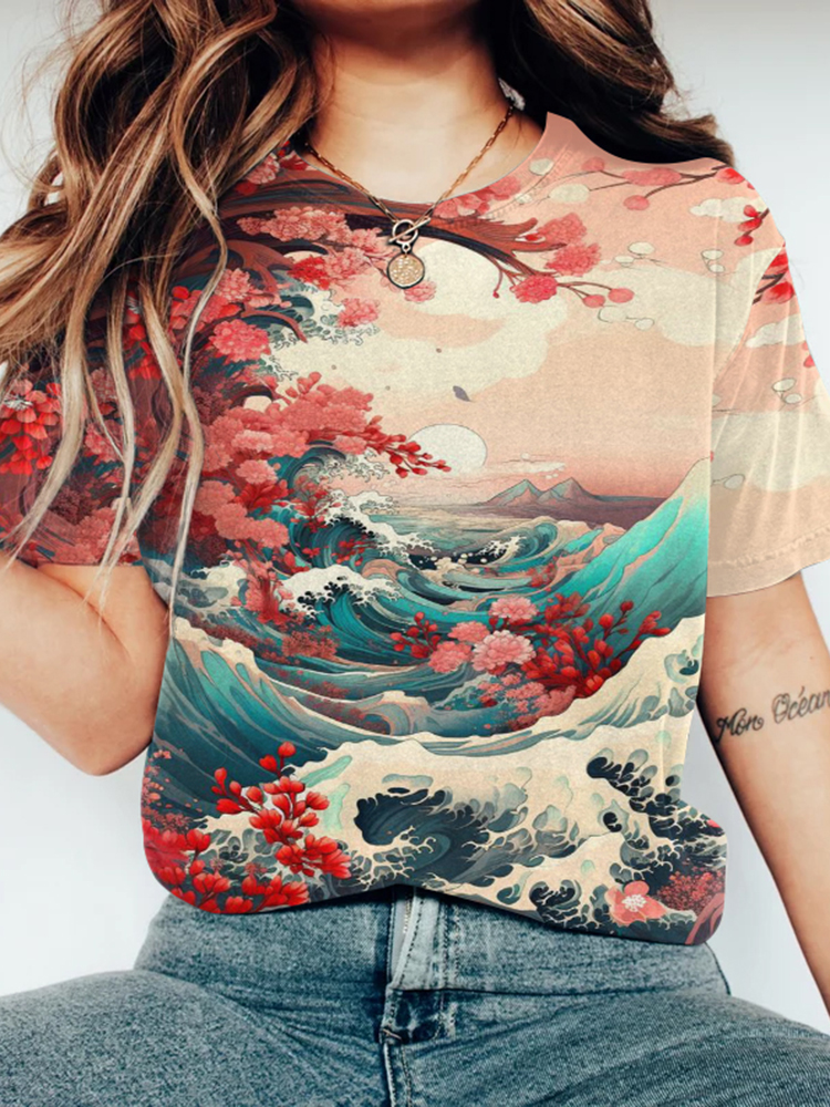 Women's Vintage Japanese Art Printed Short Sleeve T-Shirt
