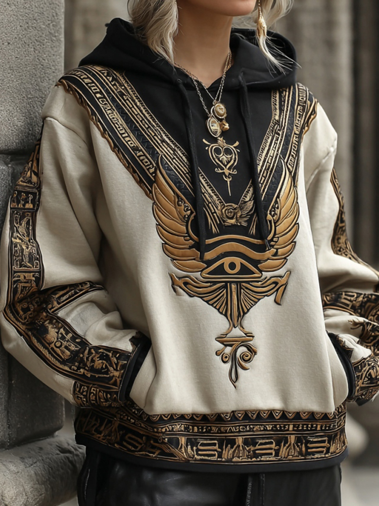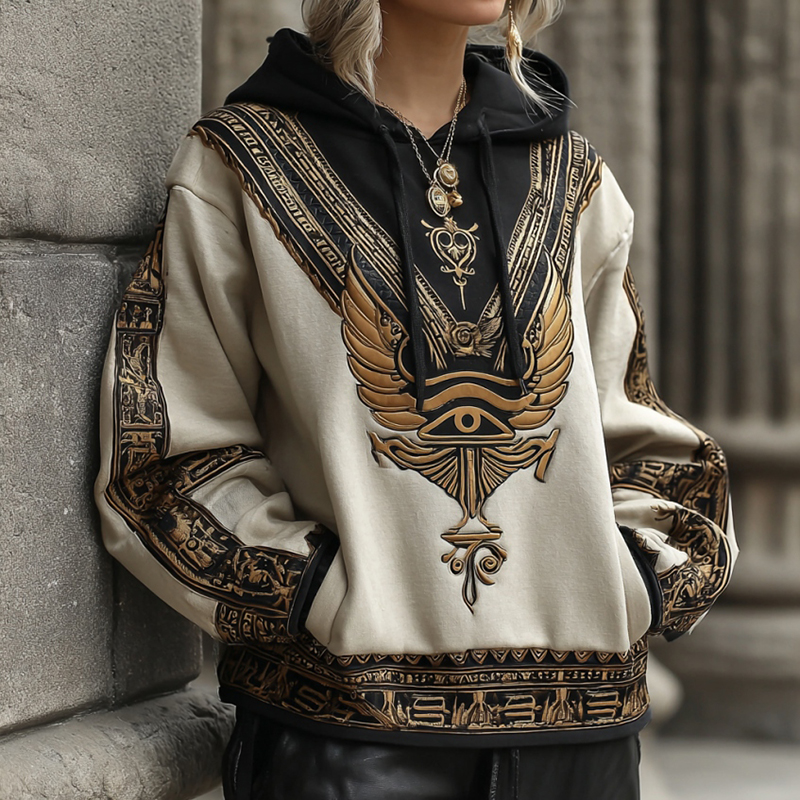 Women's Vintage Tribal Egyptian Eye Of Horus Symbol Cozy Hoodie